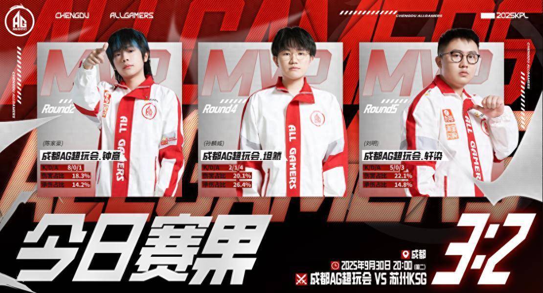 国庆快乐!AG和KSG从9月直接打到10月,有惊无险,还是3-2拿下了胜利。钟意的裴擒虎复刻春决,关键四杀救世。轩染的曹操也是拉满了。
