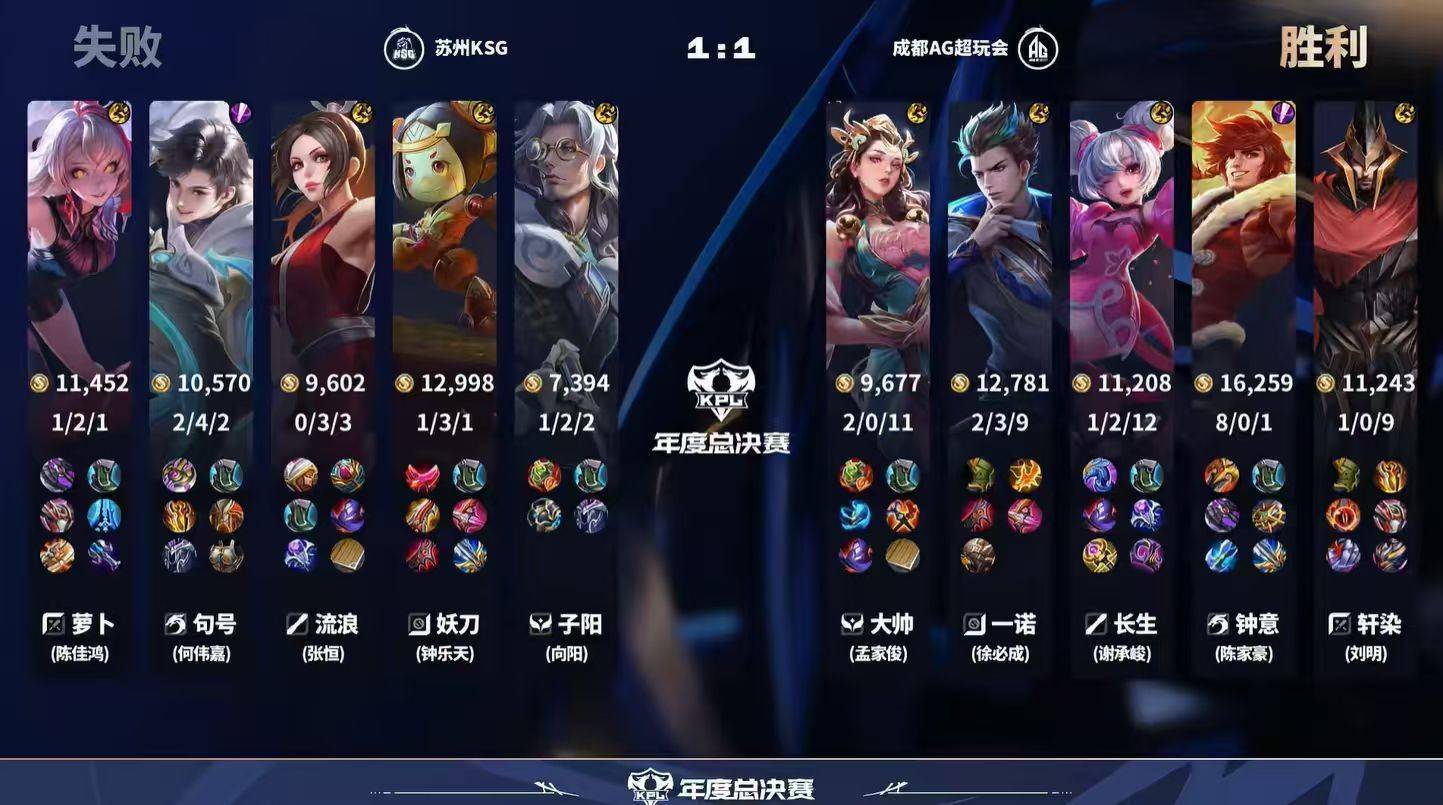不过AG的状态确实不算太好,优势情况下没能快速终结比赛。最后还是依靠大帅勾引句号,狄仁杰蹲草定住了元坦,其他人一拥而上击杀元坦,将比分扳平。